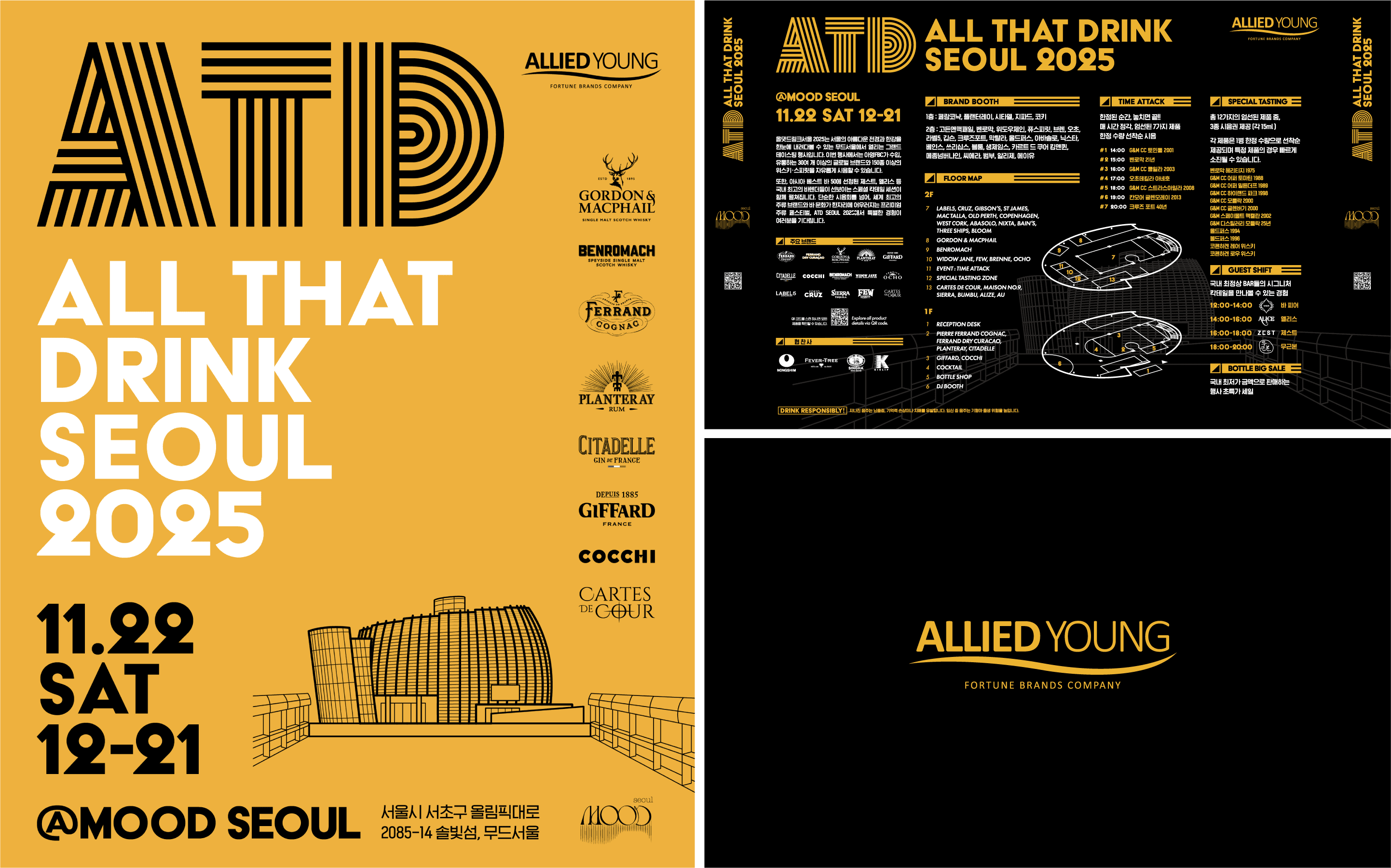 "All That Drink 2025"는 '스피릿의 본질적 탐험' 이라는 주제로 개최된 주류 무한 시음회입니다. 국내에서 처음 시도되는 행사인 만큼 브랜드별 숙성의 깊이를 충분히 느낄 수 있도록 기획되었습니다.